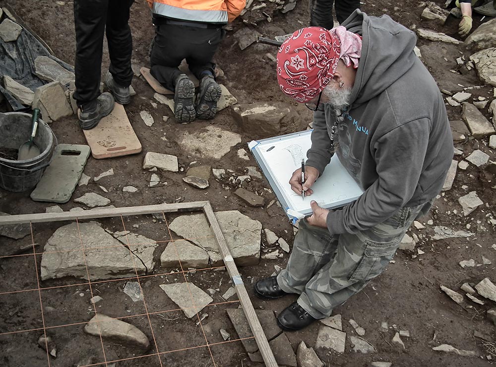 While hundreds of visitors milled around the site, work in the trenches continued.