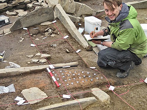 N25 quartz hammerstone Str13 Can you spot Structure 28 under 12 W23 pecked stone detail Fine quality stonework at the Ness of Brodgar Some of the resilient visitors today as they huddle behind the site shop to hear the latest from Roy J20bone point+scale Str10 J120 bone point Str10 I19 Flint+scaleStr10 P42 macehead Nice flint tool at the Ness of Brodgar AA10 flint scraper Large threshold slab revealed in the magnificent eastern entrance to Structure 12, respendent with flanking standing stones The quagmire of the carpark is tranformed with the AL26 flint closeup Str1 AF 17Camptonite axe frag AF17 Camptonite axe frag +scale Wulfric tirelessly barrows the sandbags to the tre W23 pecked stone Macehead fragment at the Ness of Brodgar Archaeomagnetic dating samples at the Ness of Brodgar 1 2 ... 4 ►